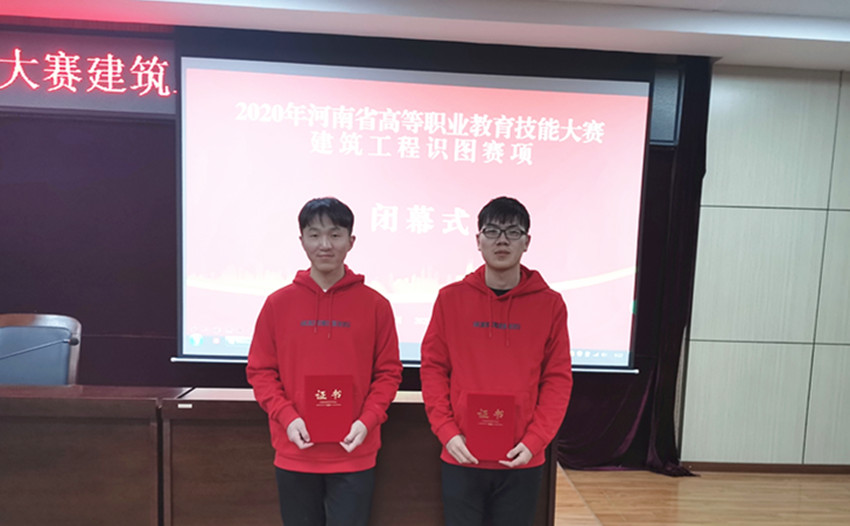 2020年12月9日~10日,河南省高等职业教育技能大赛“建筑工程识图”赛项在河南建筑职业技术学院隆重举行,共有来自全省50支代表队100名选手参赛。经过激烈角逐,我院2018级建筑设计专业学生李照建、王海洋组成的代表队荣获团体一等奖。鲁艳蕊、闫振林老师获优秀指导教师称号。